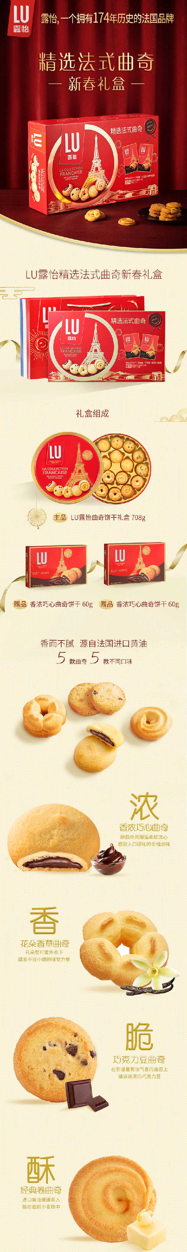 这款露怡曲奇饼干源自法国174年的经典品牌,产品在越南进口,使用法国进口黄油,一盒有香浓巧心曲奇、花朵香草曲奇、巧克力豆曲奇、经典卷曲奇和椰蓉黄油曲奇5种口味,精致铁盒,自带包装盒和手提袋,送人自食均可。