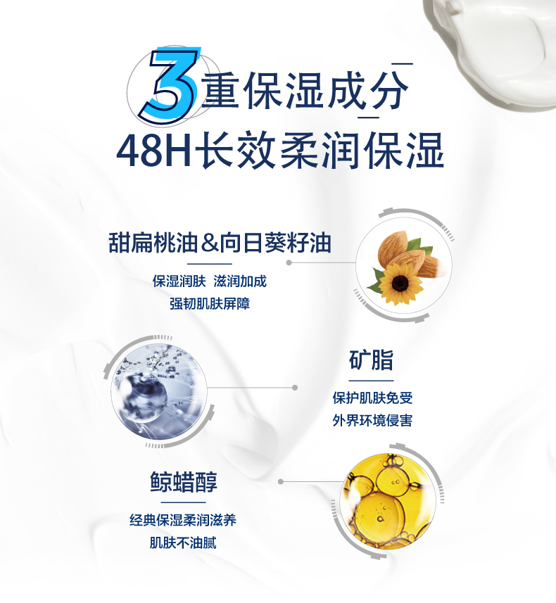 富含强效而温和的水合因子,保湿效果迅速而持久,保持肌肤持久润泽。质地非常温和,无刺激,用后皮肤柔软而富有弹性,无香。