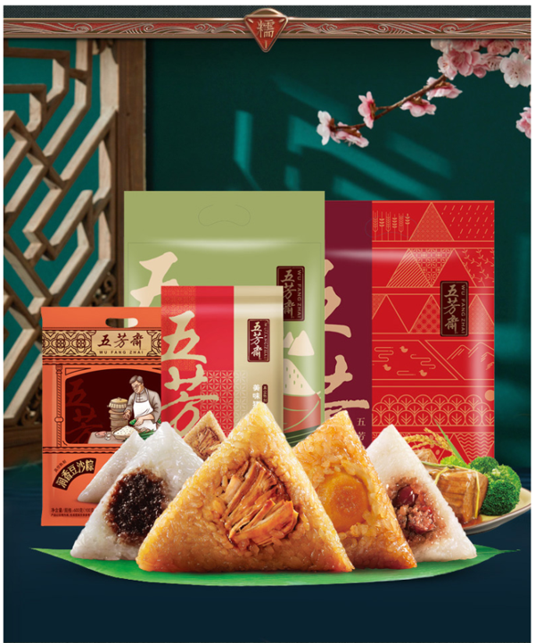 五芳斋(WU FANG ZHAI)是浙江五芳斋集团旗下粽子品牌,始于1921年,其产品线涵盖粽子,盐鸭蛋,卤味,东坡肉等。