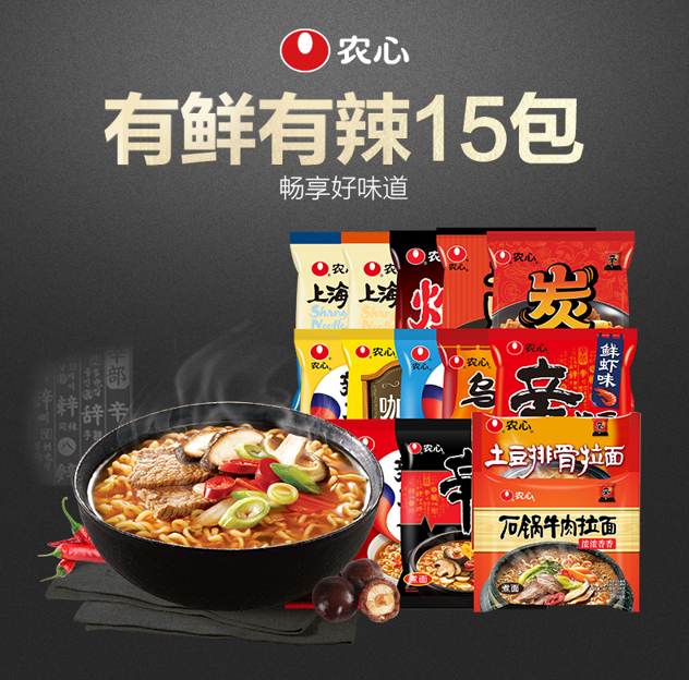天猫农心官方旗舰店84.9元,可领25元优惠券,实付59.9元到手,15口味组合内含:辛拉面、部队锅、炒辣白菜、石锅牛肉、乌龙、炭烧鸡排等15种口味,一次尽享超多美味,超划算价格,喜欢农心的不要错过。地道韩式拉面,部分拉面和国内的不同,没有油包,吃起来也就不那么油腻。