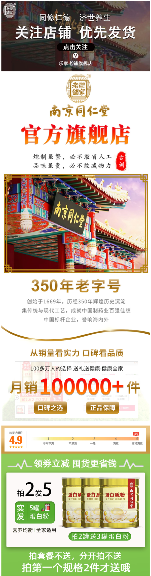 南京同仁堂始于清康熙8年,1995年被国家内贸部授予“中华老字号”、2006年被商务部再次授予中国第一批“中华老字号”的荣誉称号。公司生产产品在历年的市场抽查中,合格率均为100%。