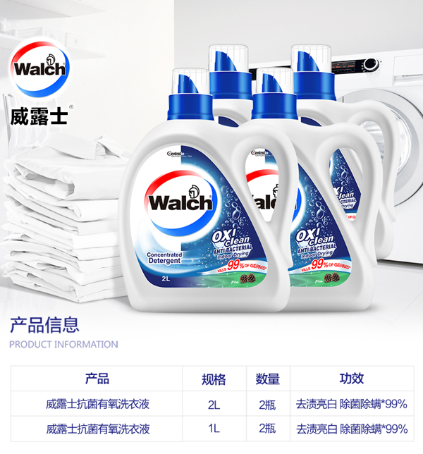 威露士洗衣液套装:内含2KG装2瓶、1KG装2瓶,一共6kg/12斤。有氧洗配方,深层净洁,含威露士消毒成分,祛除异味,除菌*除螨99%,内衣外裤还能一起洗~领券链接点此