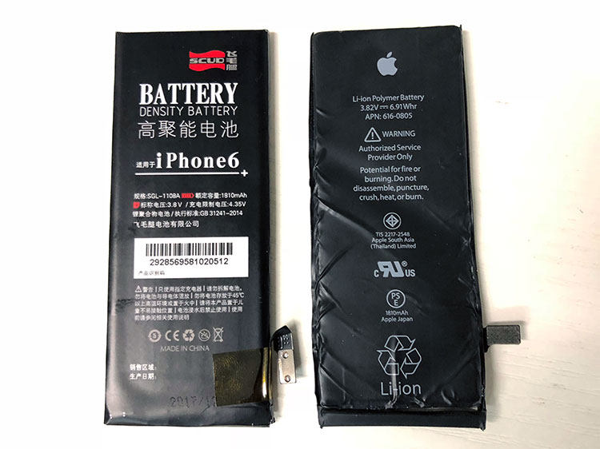 ▲左飞毛腿电池,右苹果内置电池
