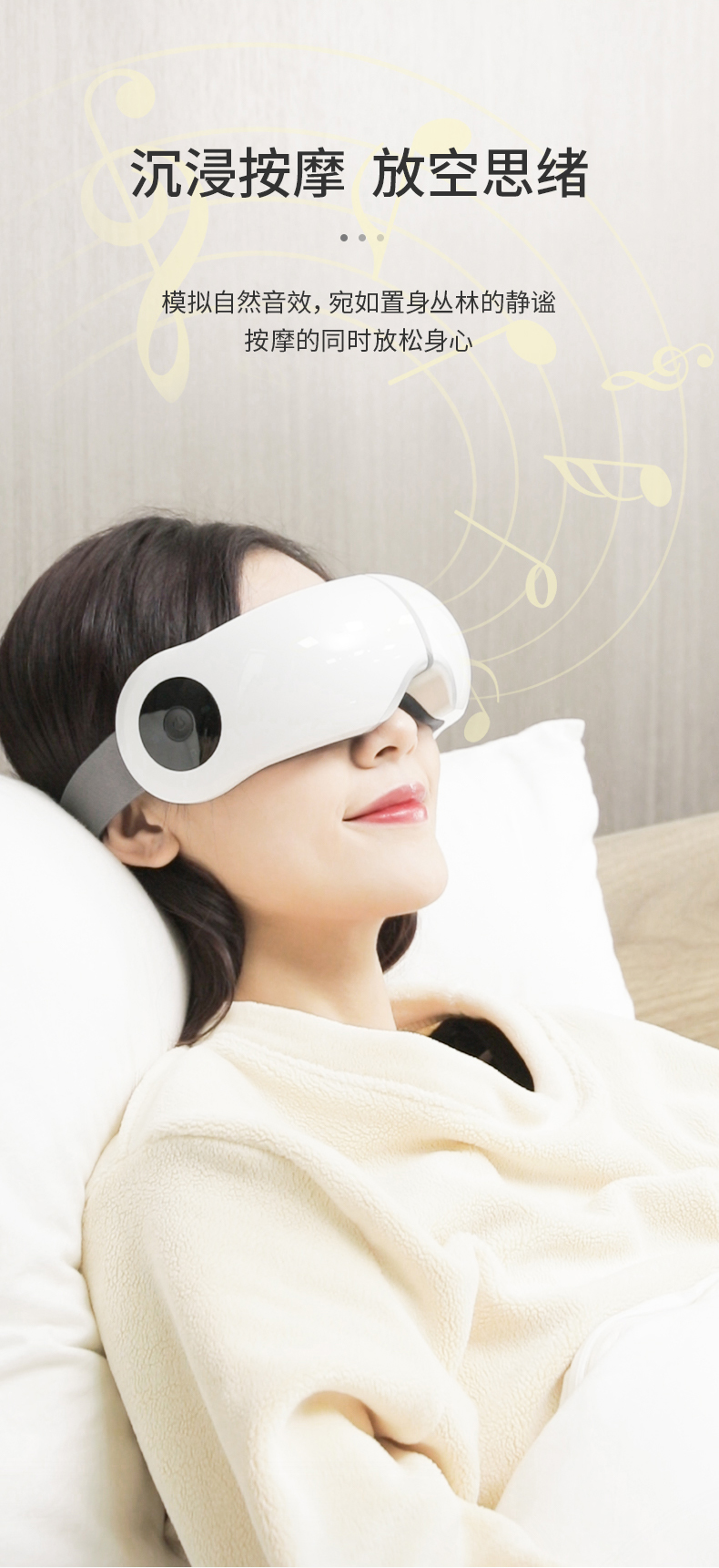 升级活力、放松、舒缓、护眼、睡眠、5种按摩模式、满足多元化按摩需求。可缓解眼部疲劳、干涩、水肿、黑眼圈等,特别适合白领、学生、喜欢玩手机、用电脑等用眼过度人群。