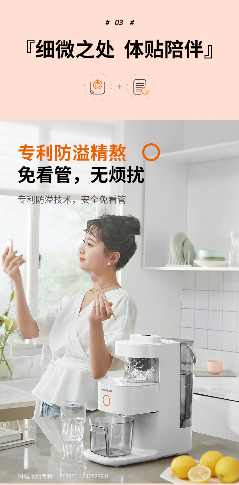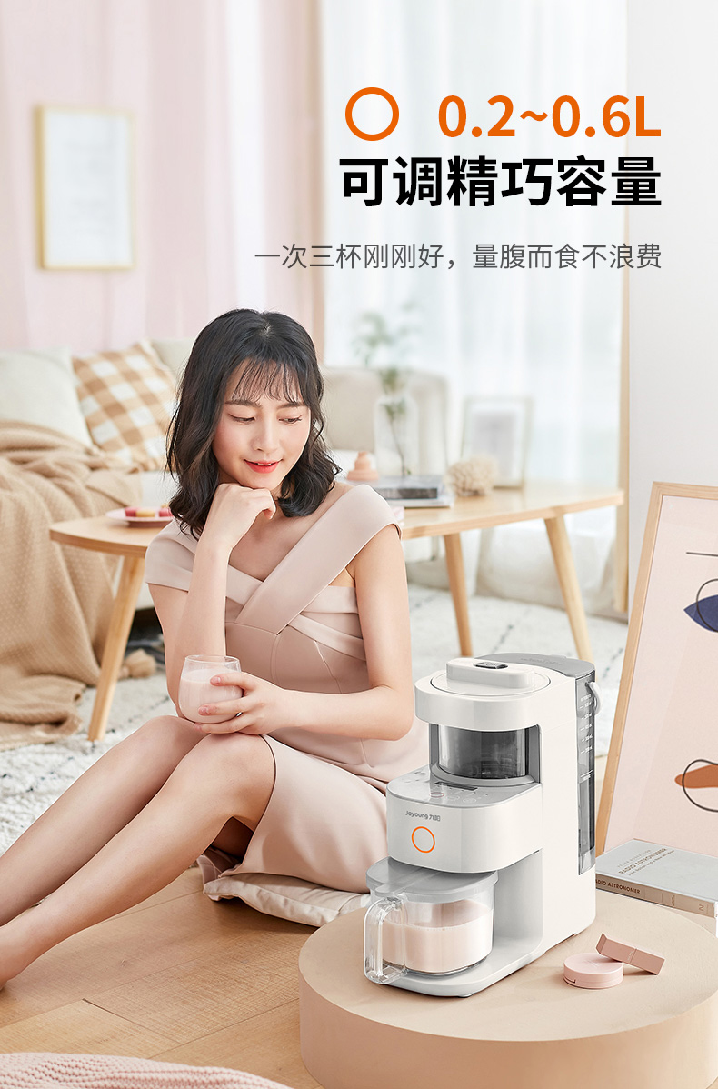 这款免洗豆浆机,迷你精简,单次0.2-0.6L容量,智能LED触屏,一键设定专属特色食谱,专利防溢精熬,无需看管,智能自清洗+热烘除菌,守护健康更安全,对懒人来说太方便了。