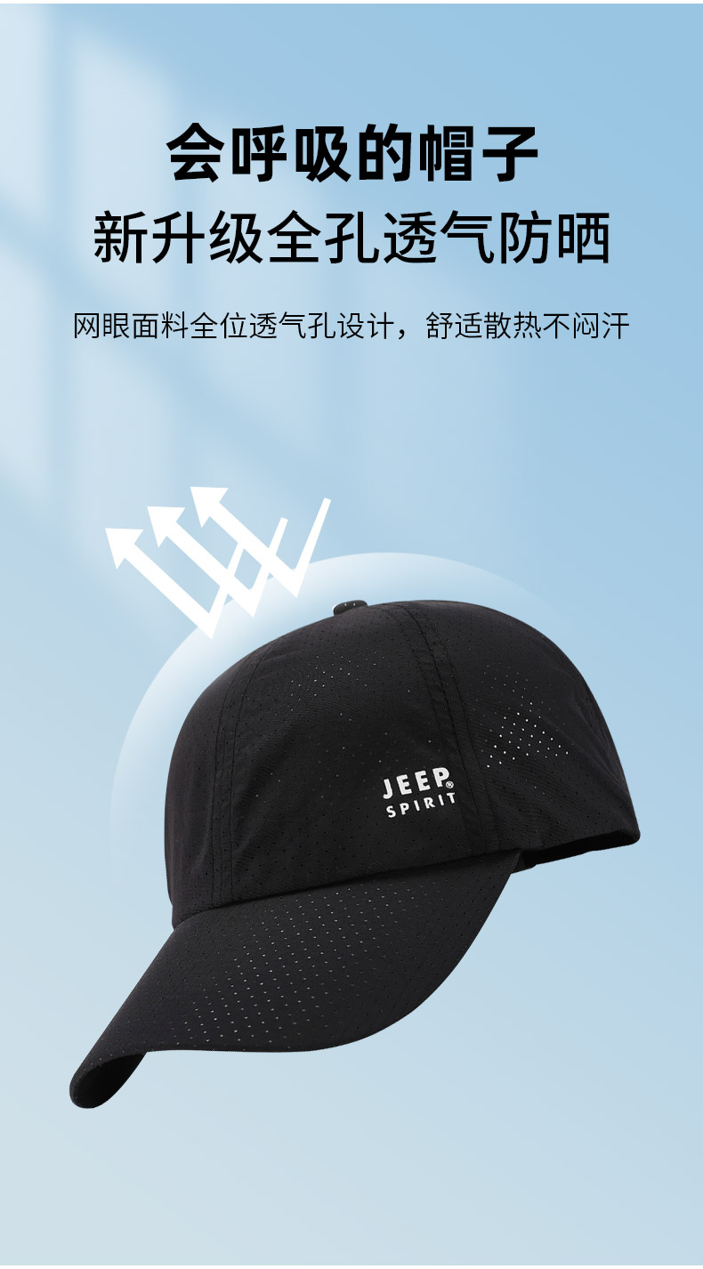 天猫吉普从曼专卖店68元,下单立减10元,可领20元优惠券,实付38元到手。多色可选。这款JEEP吉普帽子 男士透气防晒速干遮阳帽 鸭舌帽,优选速干面料,蜂巢型网面,轻盈透气,吸汗散热,有效透气排湿;帽内采用立体剪裁设计,硬朗挺阔,无压迫感;帽檐加,夏日出行更凉爽。
