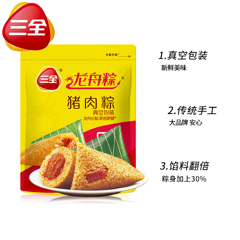 天猫三全京之良品专卖店19.9元,下单立减3元,可领10元优惠券,实付6.9元到手,可选猪肉粽或蜜枣粽,3只装300g,超值。三全大品牌,精选材料,真空包装龙舟粽,微波或蒸煮加热即食,做个早餐也很不错领券链接点此