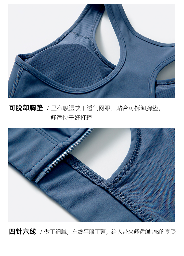 在细节上,里布吸湿快干透气网眼,贴合可拆卸胸垫,舒适快干好打理。四针六线工艺,做工细腻,车线平服工整。