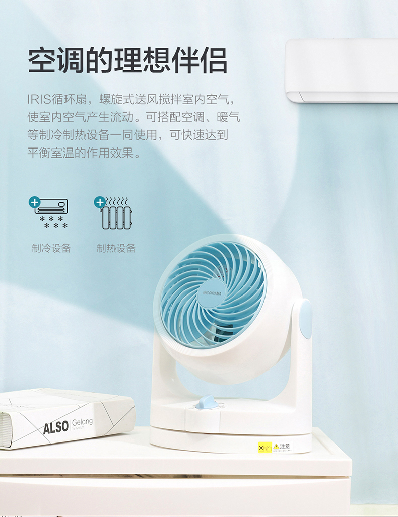 爱丽思是日本爱丽思欧雅玛株式会社公司旗下品牌,专注于家居生活类产品。荣获了2020年德国IF权威设计奖。空气循环扇能够迅速地聚集气流,将聚集的气流喷射出去,遇到障碍物后气流扩散,从而产生了空气循环气流。也就是说对着人吹是没有传统风扇的伤害的,特别适合宝宝、老人使用。大家可以看店家的动图,一个气球放在上面吹,不会被吹跑。