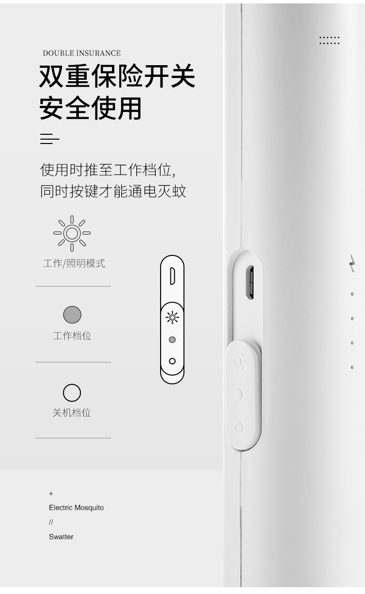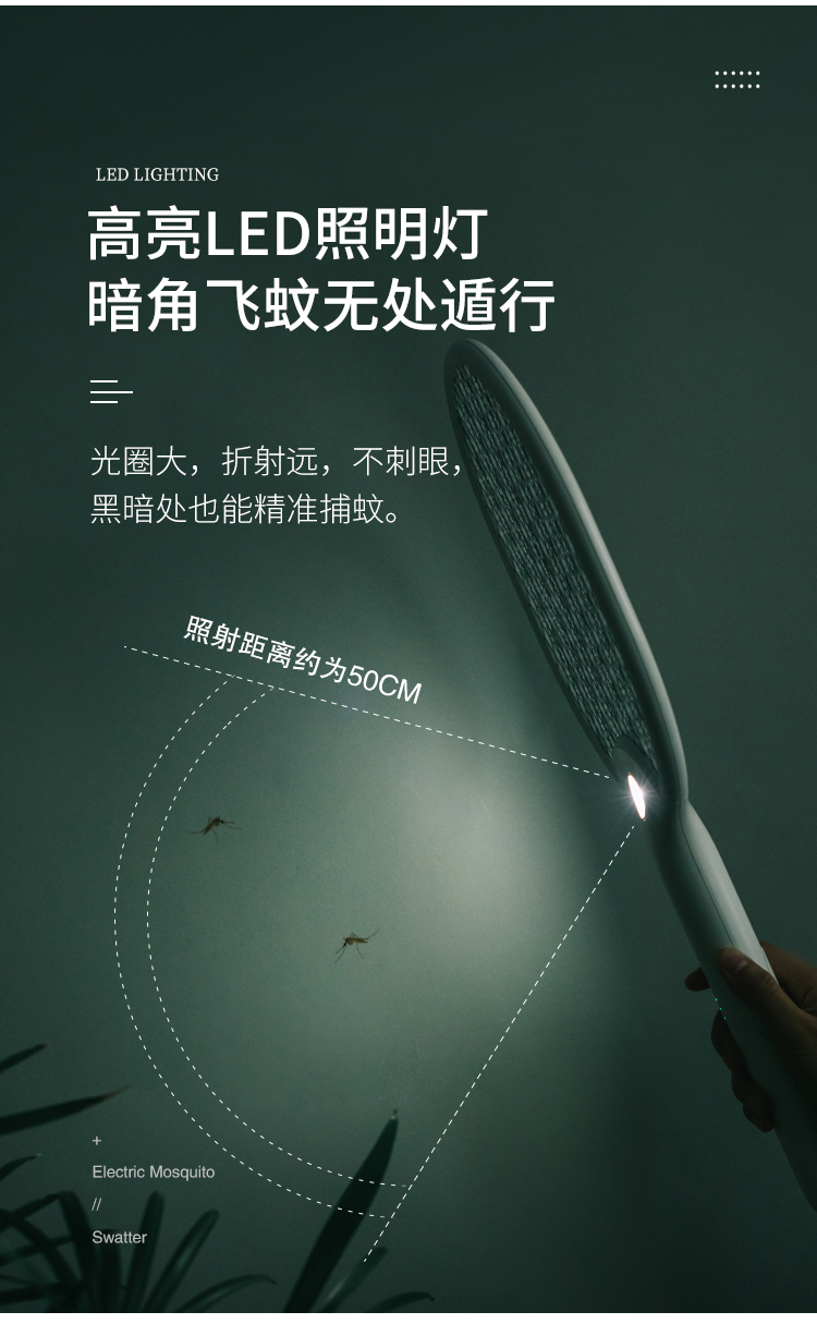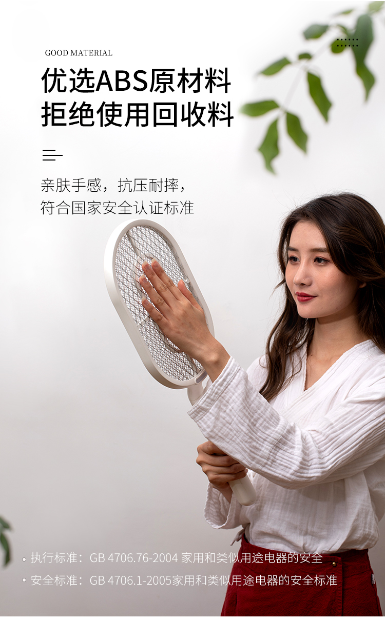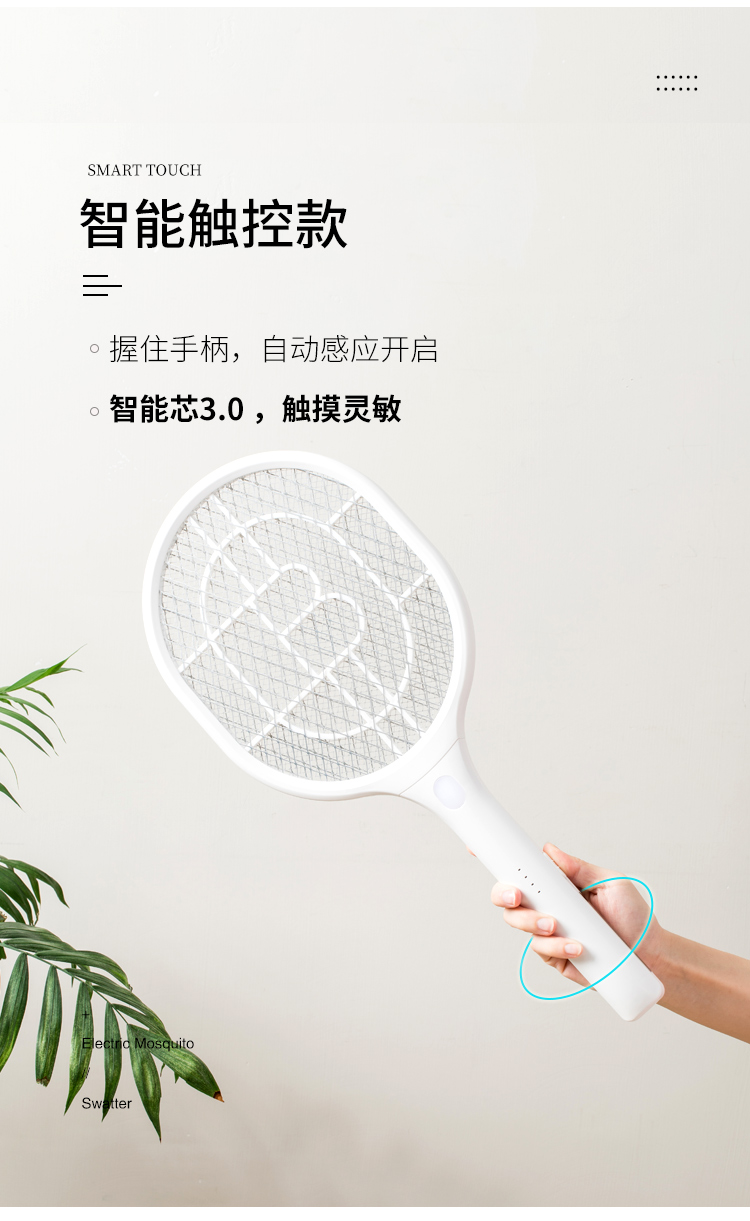 佐敦朱迪充电时简约电蚊拍,3层防护电网再小的虫子都插翅难飞,铝制电网3000v,防止漏电abs夹层,带诱蚊LED灯,led照明灯辅助,双重安全开关设计,1200ah锂电池,续航时间长,usb充电口方便快捷。