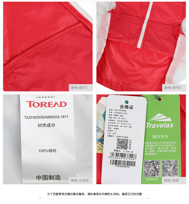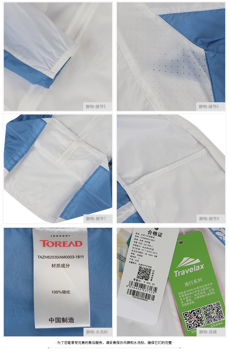在款式上,修身收腰版型,一体连帽设计,3D立体剪裁,使风帽更加贴合头型,松紧袖口,弹力松紧袖口贴合手腕不倒灌风。腋下也有透气孔,排走湿气。可把皮肤风衣自收纳为很小的体积,方便携带。