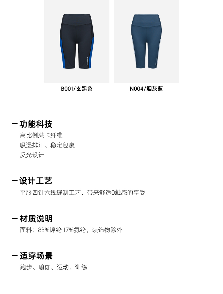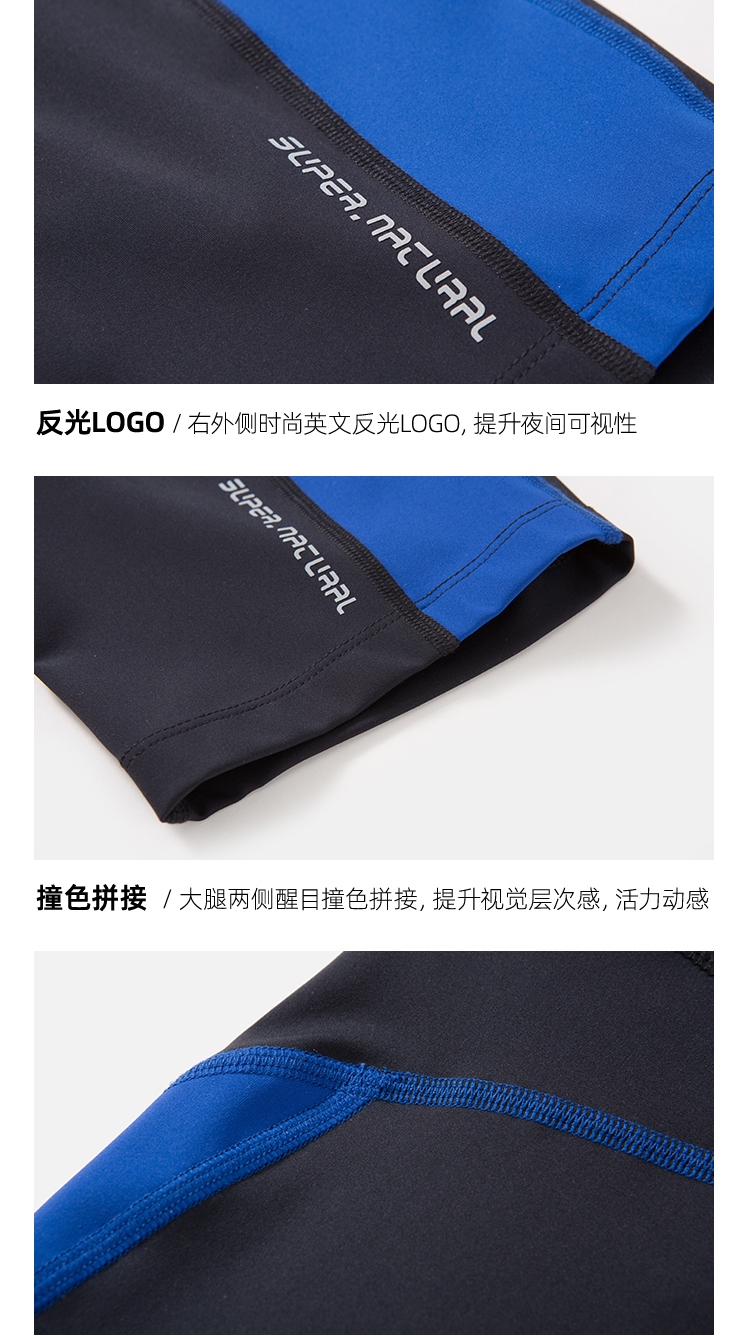 在细节上,右外侧时尚英文反光Logo,提升夜间可视性;大腿两侧醒目撞色拼接,提升视觉层次感,活力十足。面料接缝处都是四针六线,车线平服工整,触感舒适无摩擦不适。