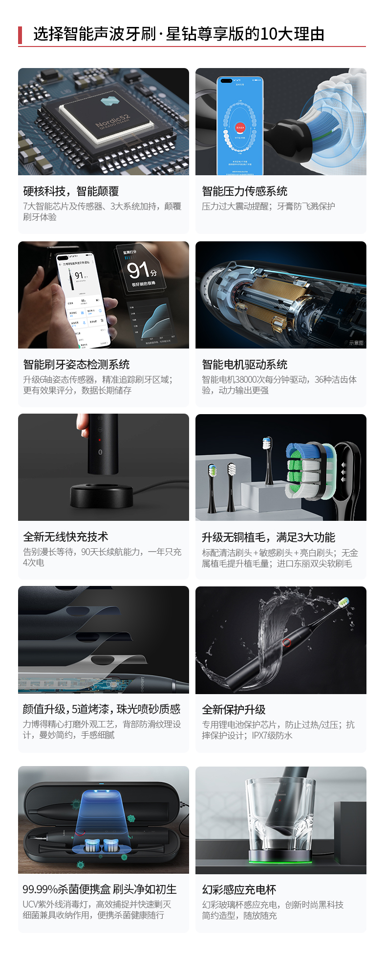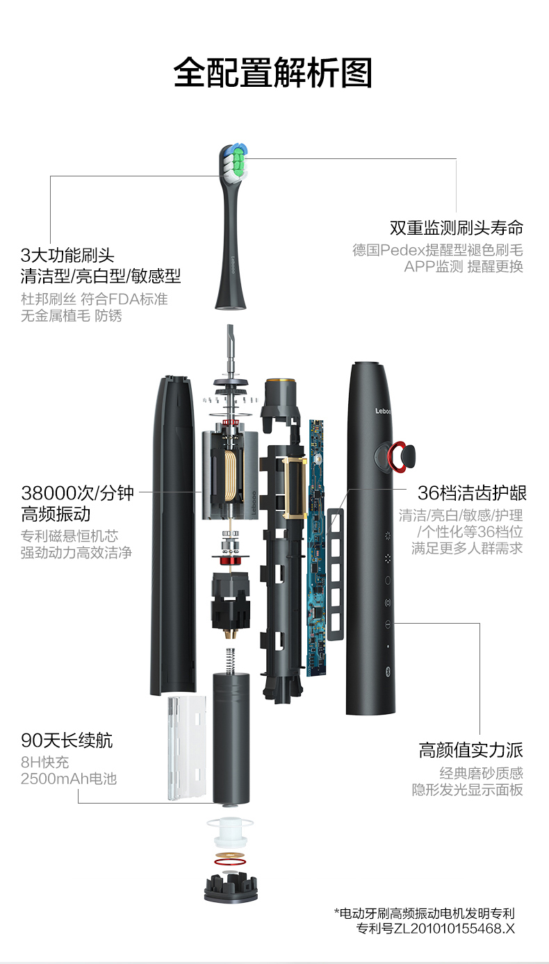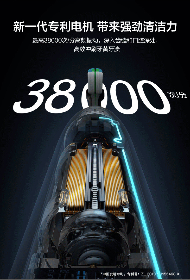 电机方面:采用专利磁悬恒机芯,38000次/分钟高频振动,输出强劲稳定;