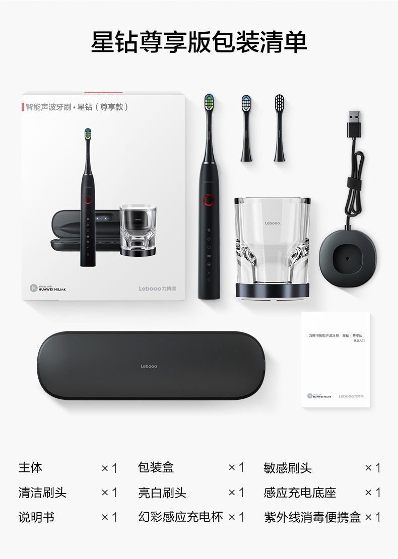 标准款此价,包含:1支牙刷+3个刷头+充电底座;尊享款牙刷性能一样,多了充电杯+便携消毒盒。