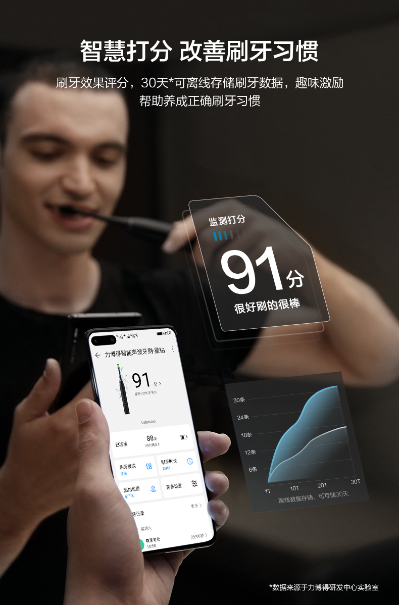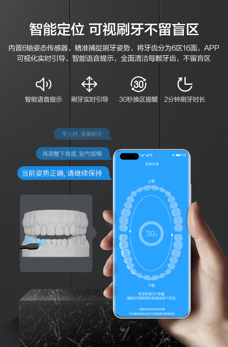 千元里最值得入手的一款电动牙刷,HUAWEI HiLink加持,通过内置6轴姿态传感器,结合精密算法系统,精准捕捉刷牙姿势,将牙齿分为6区16面,APP可视化实时引导、智能语音提示,全面清洁每颗牙齿,不留盲区。30天可离线储存刷牙数据,智慧打分,助力养生正确刷牙习惯。