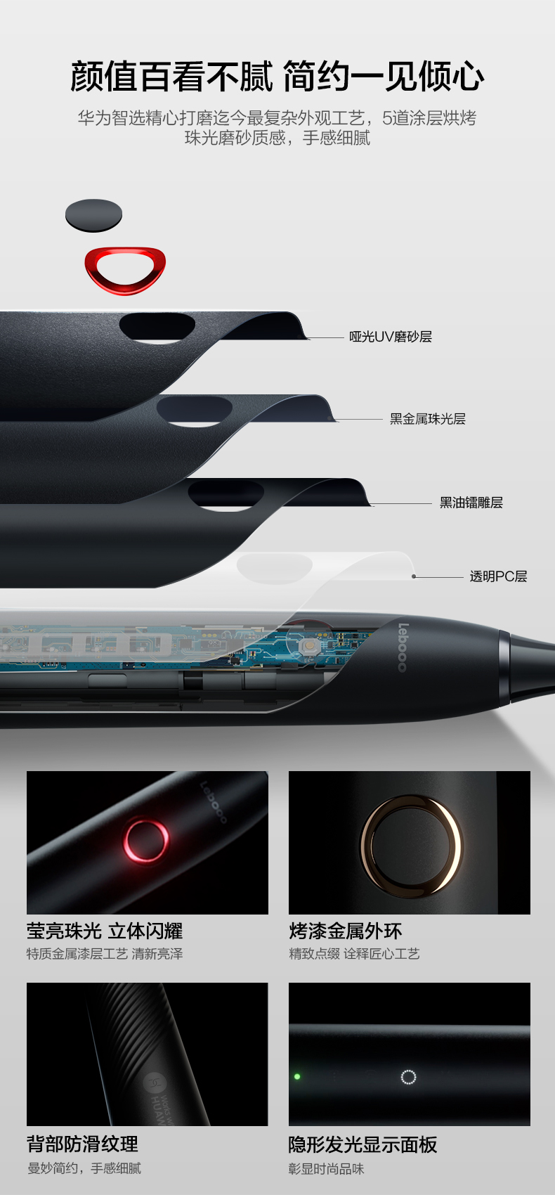 机身方面:5道烤漆、珠光磨砂质感,背部防滑纹理设计,颜值担当、手感细腻;
