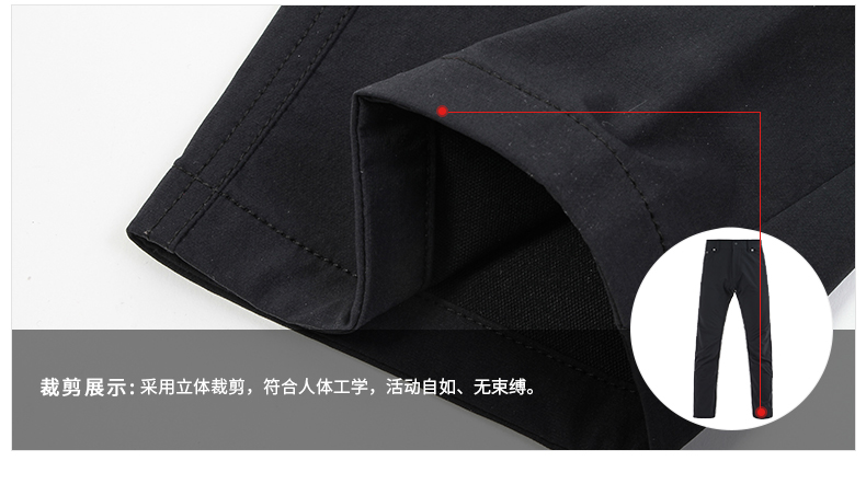 面料中混有的10.6%氨纶弹力纤维,使面料具有适度的弹力,伸展性好还抗皱,在腿部活动时没有拉扯紧绷感,具有良好的穿着体验。