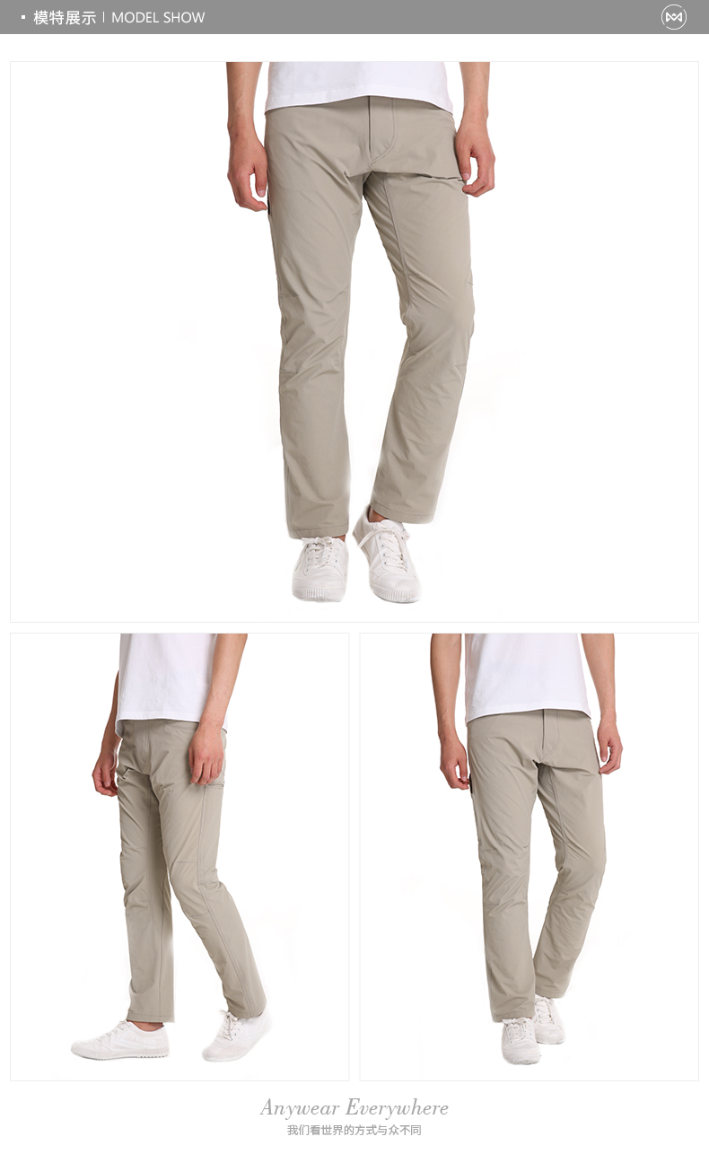 在细节上,这条裤子的裤脚和主要走线都是双线缝纫,细密牢固,走线整齐。前档门襟使用日本YKK拉链,后身口袋的LOGO是反光的。总的看,这款裤子速干舒适、轻便耐磨,适合春夏秋三季,比较热的天气,日常通勤、郊游和户外运动穿着。