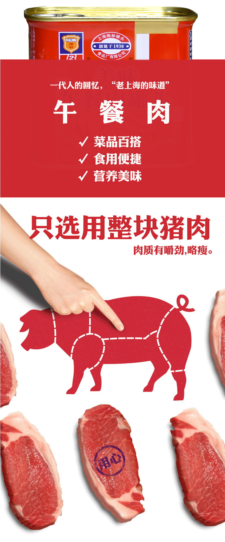 中粮新出的美味午餐肉罐头,相比于正常版的更Q弹、更爽滑,淀粉含量略多一点,但是有价格优势。精选猪肉制作,肉质Q弹,鲜香味美,无菌封罐,无防腐剂,适合涮火锅、做三明治、炒菜等多样吃法。