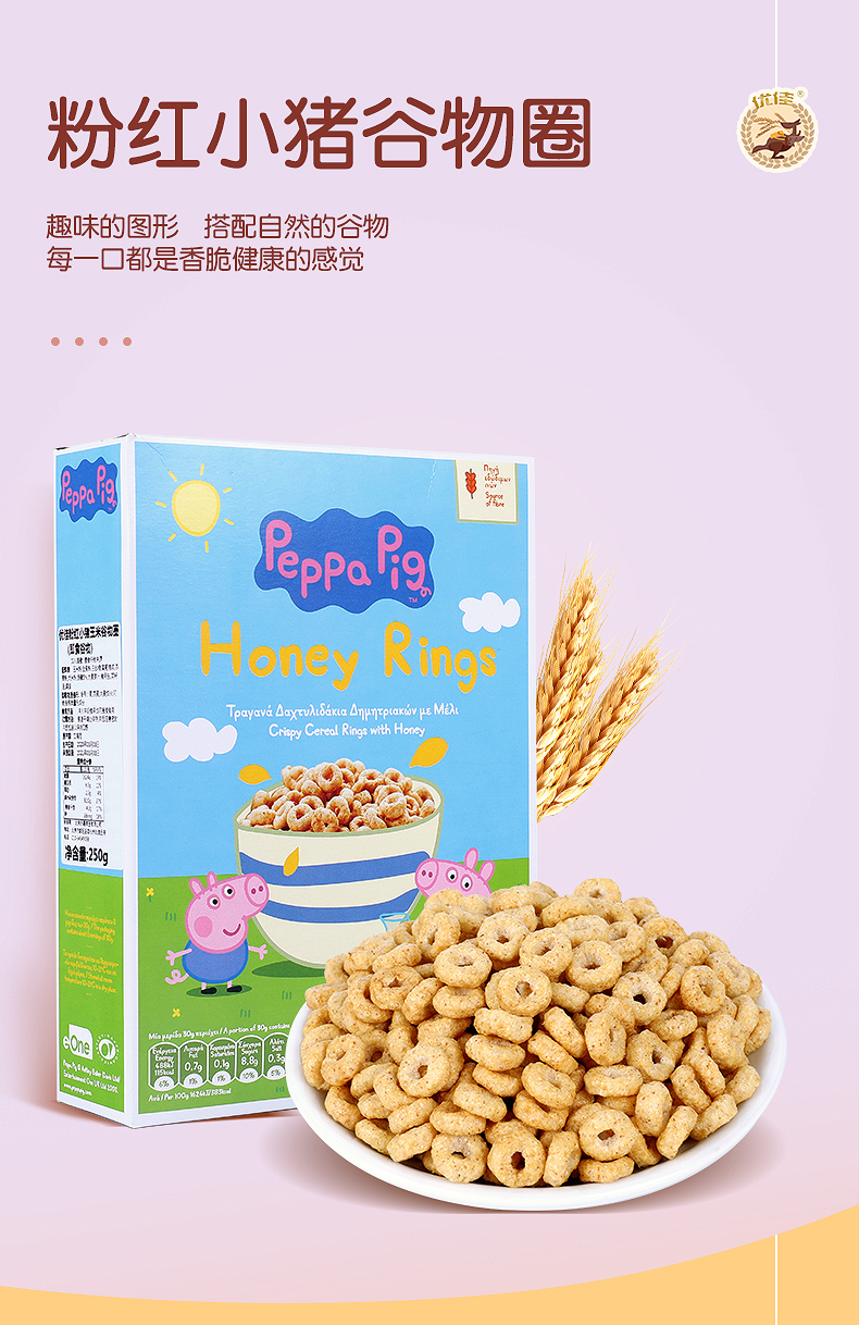 这款优佳可可谷物圈是一款即食早餐冲泡玉米麦片,立陶宛进口,可爱的萌趣卡通难过造型,更能吸引孩子的喜爱,选用优质粗粮谷物为原料,非油炸会更健康,伴随有淡淡的燕麦清香,酥脆可口,开袋即食,或搭配牛奶冲泡食用。