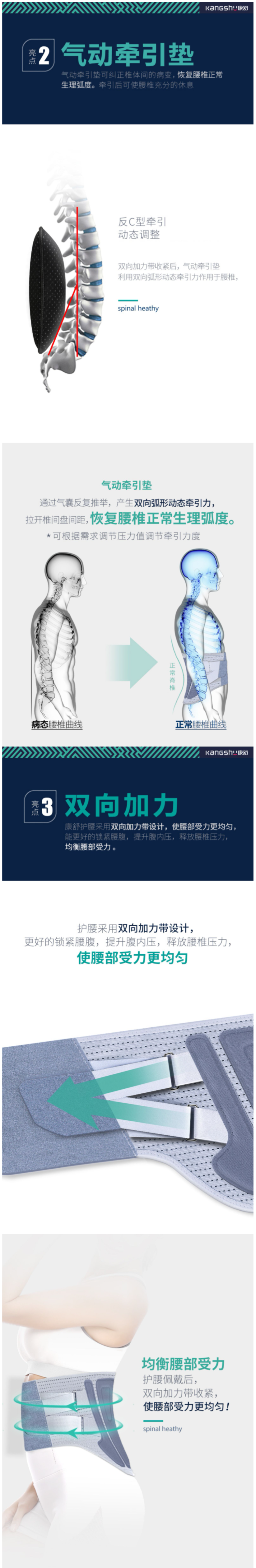 这款康舒仿生软骨护腰带是国家实用新型专利产品,使用软骨支撑,腰部双重加力技术和德国热压工艺,柔中带硬,软硬适中,自适应贴合腰椎曲线,能有效的支撑腰部,舒缓脊椎压力。