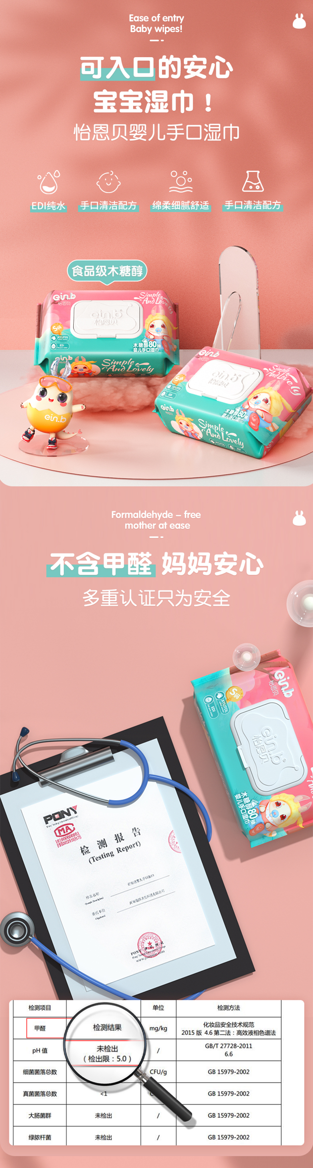 作为全球第一家母婴护理用品安全标准的缔造者。怡恩贝秉承着5A级安全标准要求产品制造体系。坚持A级配方,A级原料,A级制造,A级包装、A级检验。并且秉承着每一份原料、每一个成品都经过多次皮肤刺激性、皮肤变态反应、人体皮肤斑贴、急性经口毒性、急性眼刺激性、口腔黏膜刺激试验。确保每一件成品的安全性适合孕妈咪和婴儿使用。