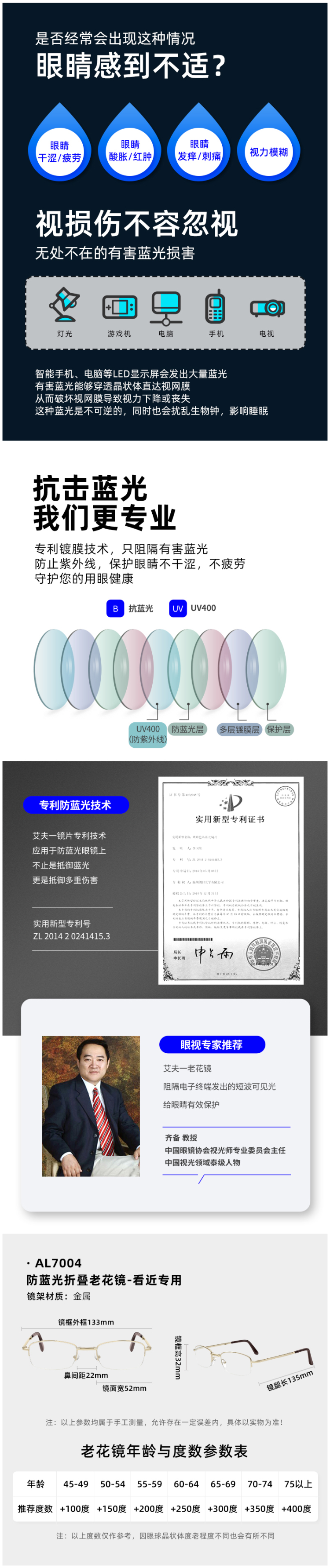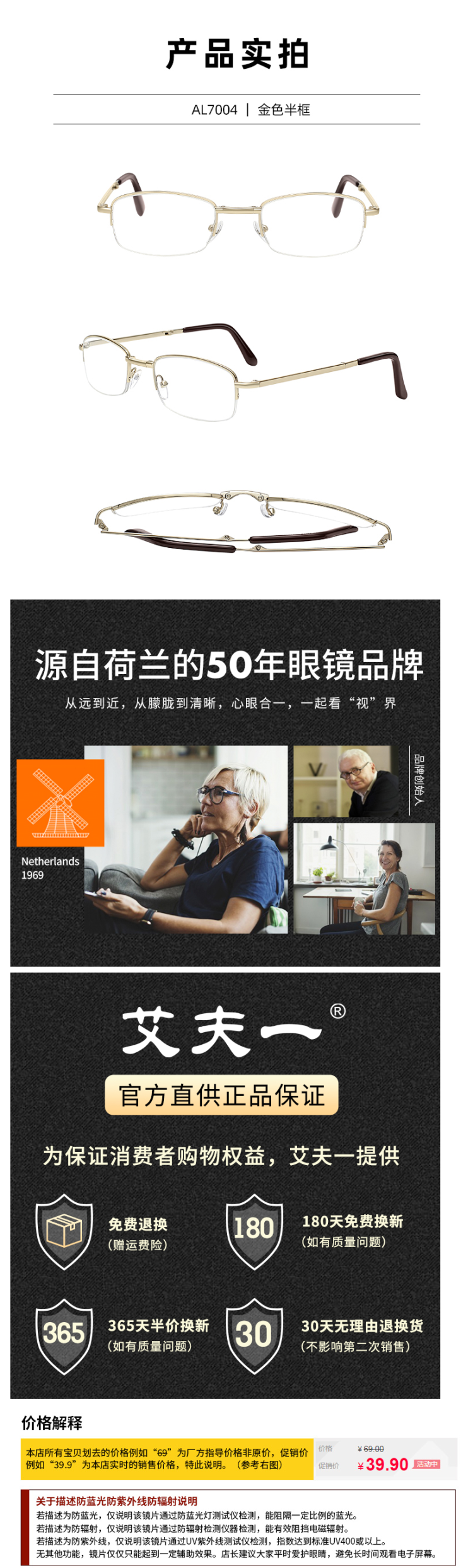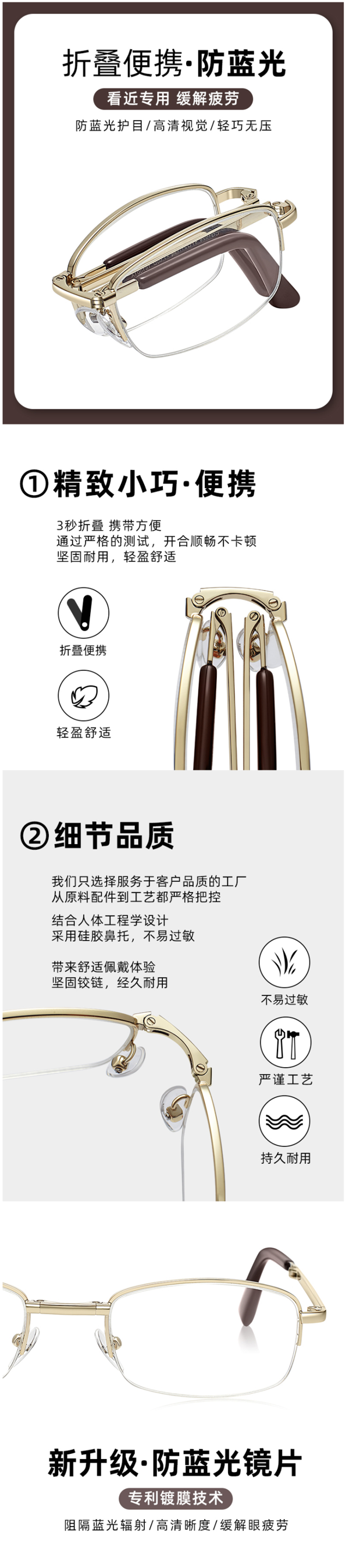 这款艾夫一可折叠超轻防蓝光老花镜,是看近专用,优质可折叠全框镜架,小巧便携,搭配升级防蓝光镜片,佩戴高清舒适护目,颜色不失真,不泛黄。