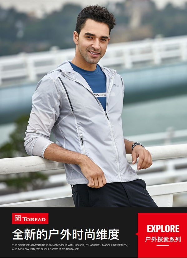 这款探路者男轻薄透气防紫外线皮肤衣,采用20D抗紫外线锦纶面料制成,强度好、抗撕裂、重量轻、防风抗污,还加入防泼水科技,无惧小雨。