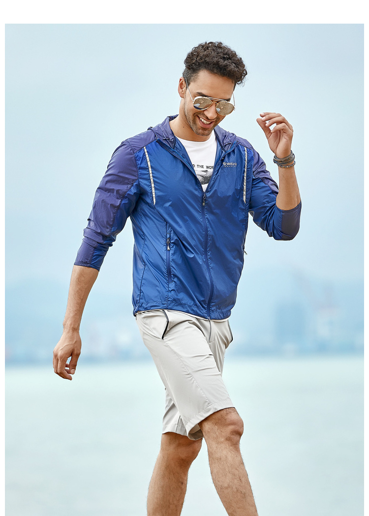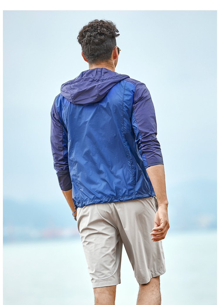 在款式上,修身版型,一体连帽设计,3D立体剪裁,使风帽更加贴合头型;松紧袖口,弹力松紧袖口贴合手腕不倒灌风。腋下和手臂等多处有透气孔,加倍透气,可把皮肤风衣自收纳为很小的体积,方便携带。