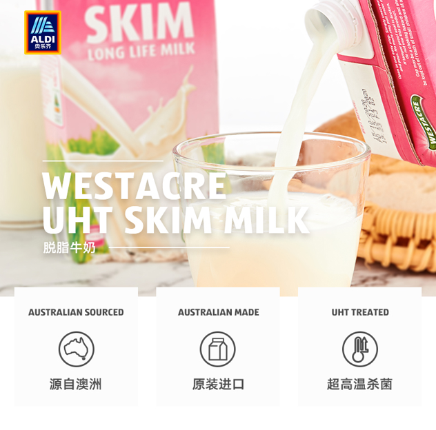 WESTACRE是澳洲著名的乳制品品牌,是奥乐齐的奶制品供应商之一,优质无污染的天然奶源,脱脂处理,每100ml蛋白质含量3.5g的高标准,高于国家标准的2.9/100ml。0脂肪低热量,每一道工序都有严格的监督,品质有保障。适合有健身,减脂需求人群。