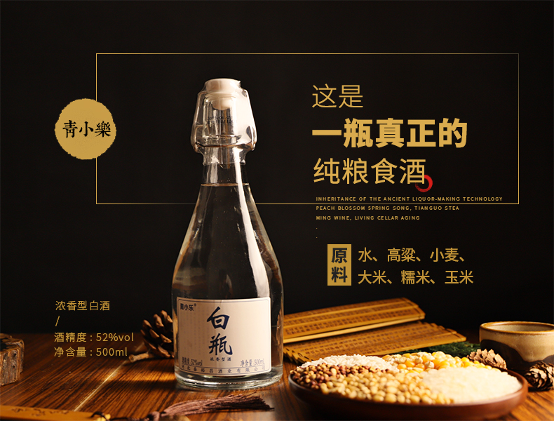 青小乐则由义庆隆老酒坊经典出品,品牌荣获非物质文化遗产。此款 青小乐与聚划算联合推出,古法制曲,地缸发酵理念去制作酒,是值得入手的亲民好酒。