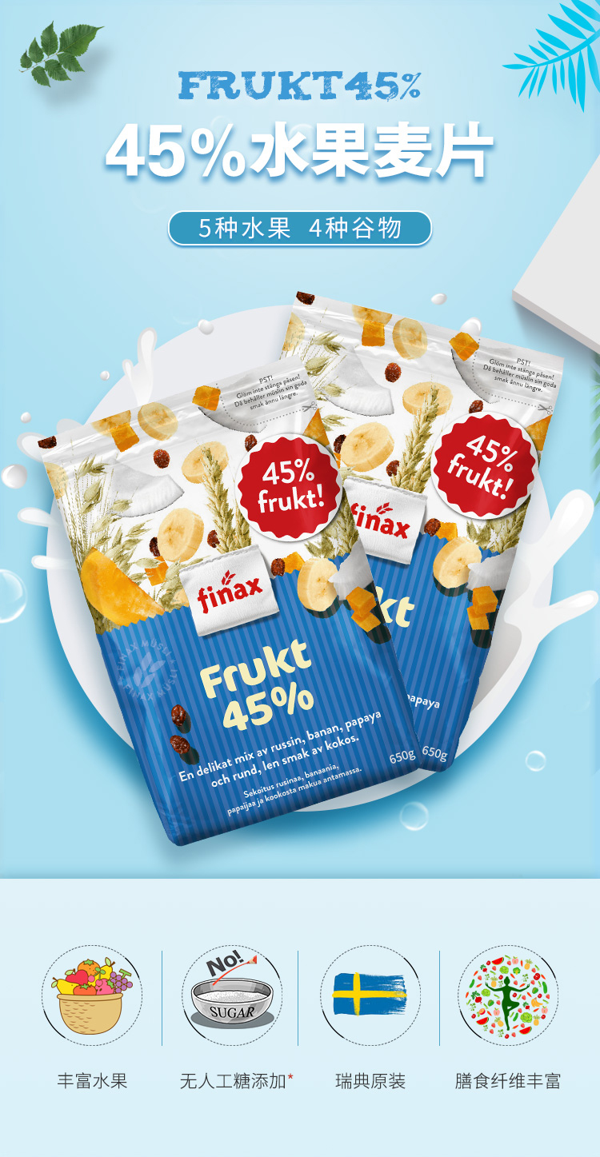 天猫finax海外旗舰店89.9元,可领30元优惠券,实付59.9元到手,FINAX麦片,瑞典本土生产原装进口,选用北欧优质燕麦,提子干、葡萄干、木瓜干、香蕉干、椰子干、荞麦、大麦、等杂粮,科学配比,其中水果含量占比45%。