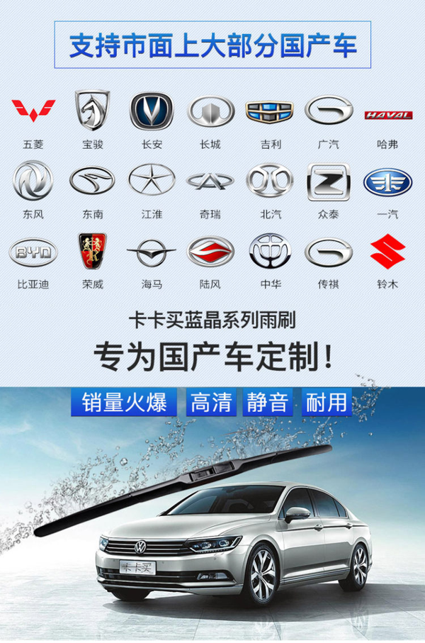 天猫卡卡买车品旗舰店35.1元,可领30元优惠券,实付5.1元到手,是正价198元的0.3折;实付满48元买一送一 高清静音。采用记忆钢片和天然橡胶胶条,专车专配,压力均匀,贴合玻璃刮拭更加清晰。采用A级胶条,减少磨损,更加静音,超长耐用使用寿命长。