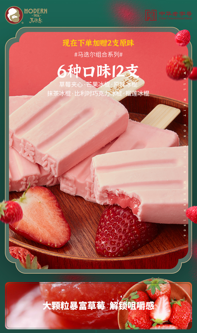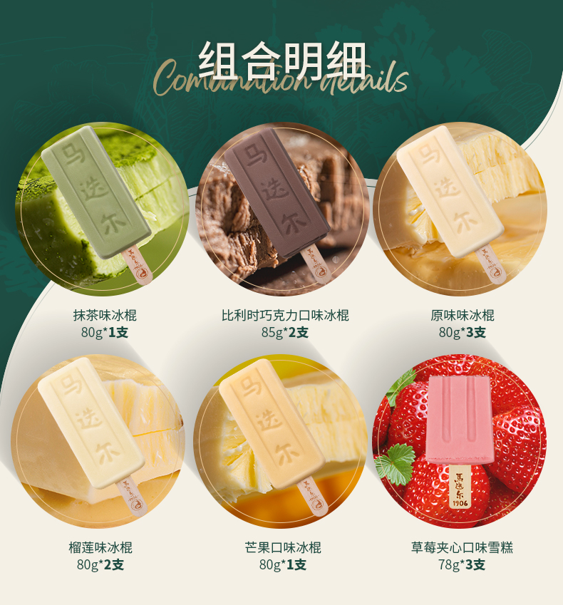 天猫马迭尔旗舰店138元,可领40元优惠券,实付98元到手,下单加赠原味2支,共到手抹茶味1支、比利时巧克力味2支、原味5支、榴莲味2支、芒果味1支和草莓夹心味3支,共14支,其中,草莓夹心是今年的新品。