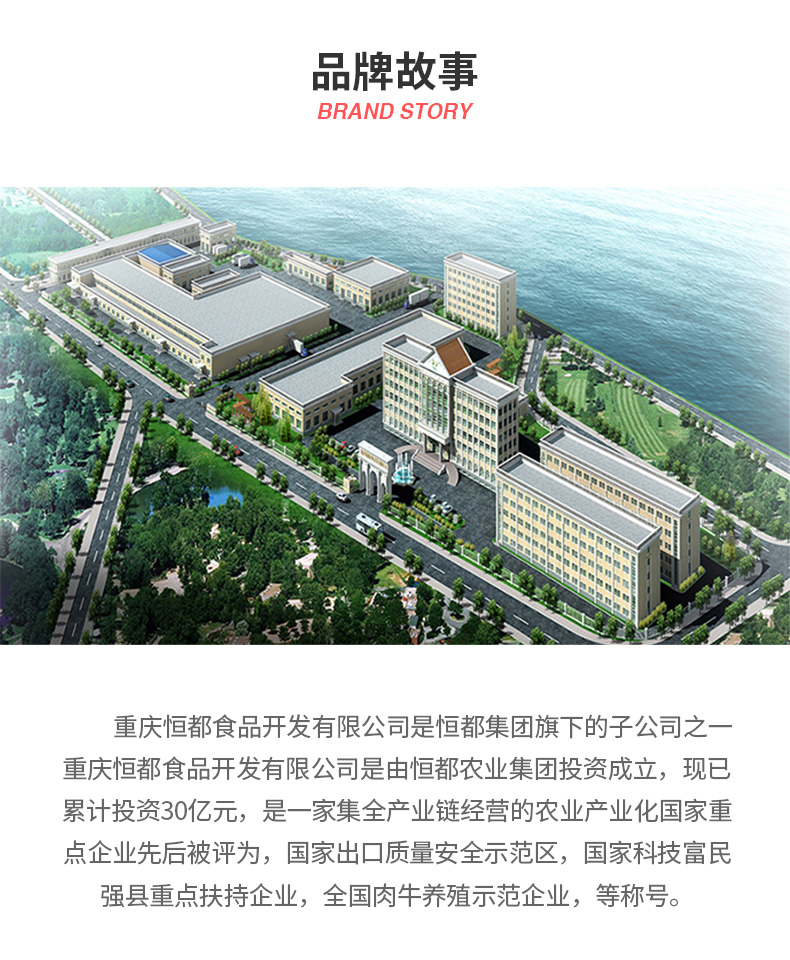 恒都农业集团经过7年不懈努力,旗下拥有重庆恒都食品、重庆恒都乾途食品、河南恒都食品、重庆恒都饲料、内蒙恒都农业等8个全资子公司,目前已通过ISO-9001、ISO-22000、HACCP、QS、清真食品、绿色食品、有机产品等七大认证,并成功获得出口备案证明。