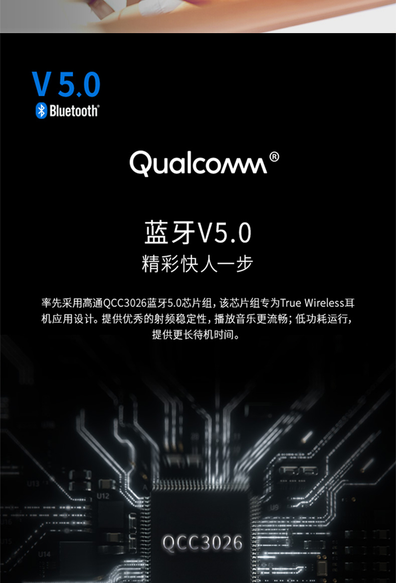 这款漫步者TWS1是19年6月发布的,使用高通QCC3020芯片,通过蓝牙5.0连接,支持aptX无损解码,音质更强,延迟更低,使用更加省心。