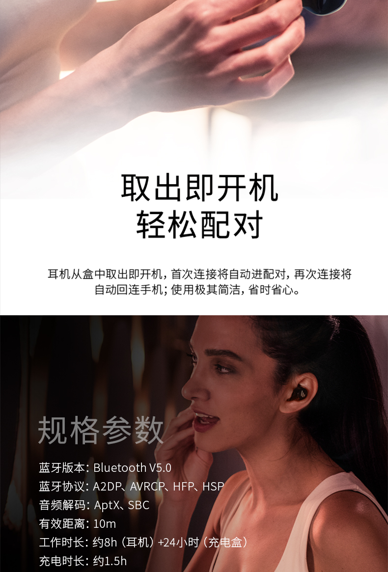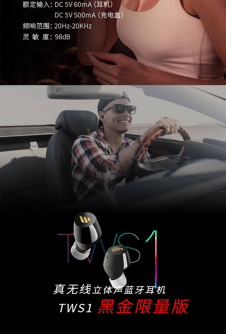 3D人体工学开模设计,曲面入耳,适合于绝大多数的耳型,单次续航8小时,耳机盒还能提供24小时的续航延长,无需担心电量问题,音质方面,使用生物振膜,结合漫步者多年的声学经验,三频均衡,还有IPX5级防水,可应对户外雨水和汗水的冲击。