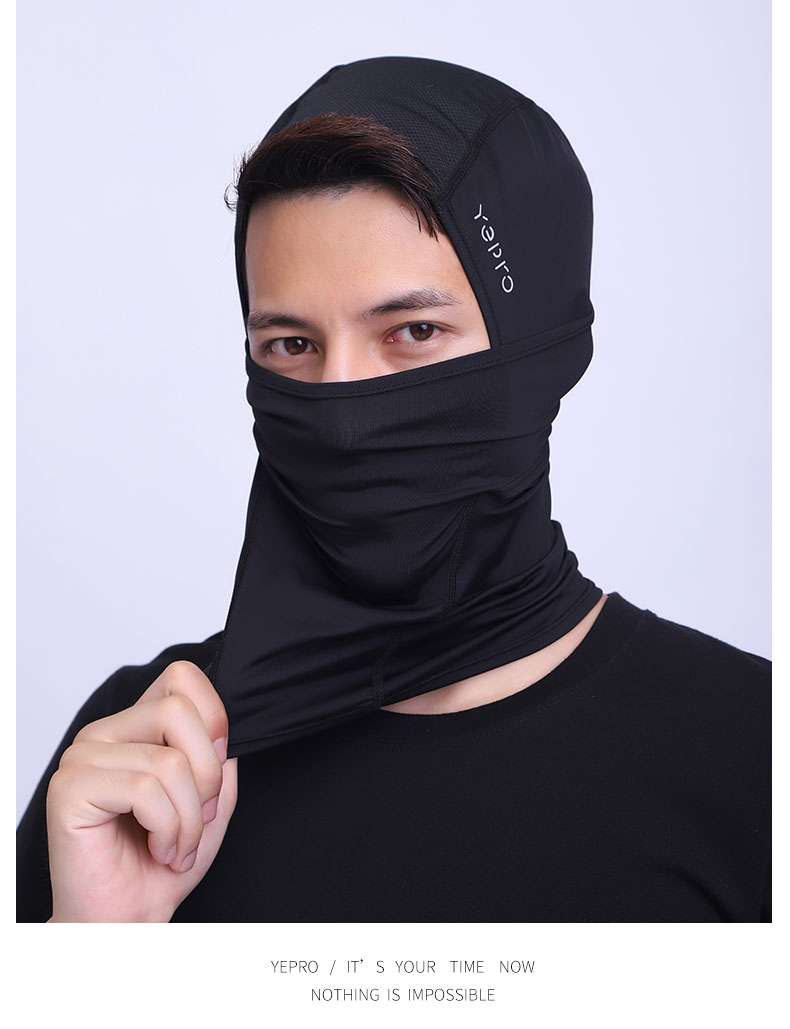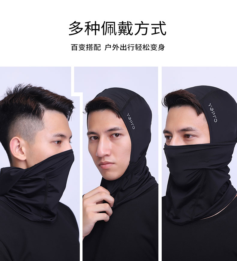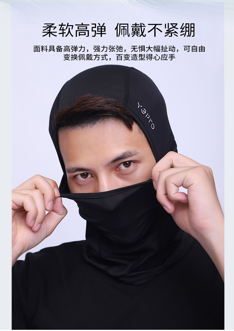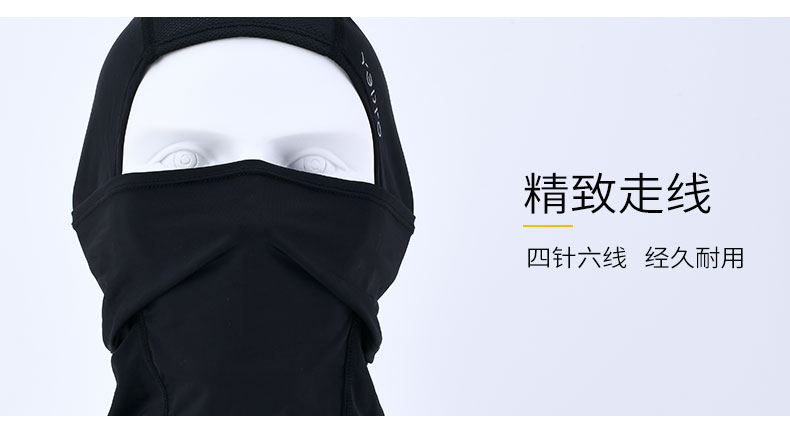 在细节上:头顶部分是冰丝网眼布,散热更迅速,还能无缝兼容运动头盔;加长护颈,360°全方位的保护脖颈肌肤。四针六线,无接缝凸起摩擦皮肤引起不适。