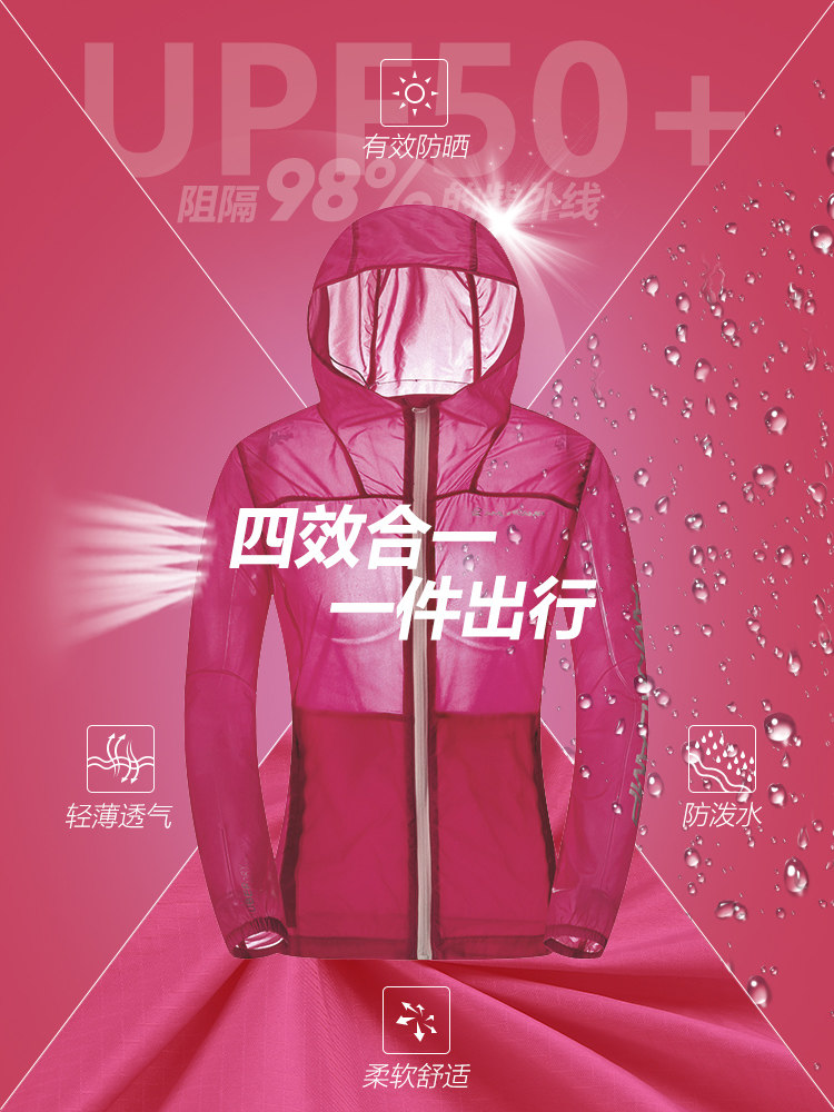 这款皮肤风衣还支持「UPF 50+」的50倍防晒。UPF值是防紫外线系数,UPF值为40,即只有1/40的紫外线可以穿透,俗称「40倍防晒」。UPF值从10+到50+,UPF>50时,标为UPF 50+,此时紫外线对人的影响可忽略不计,所以UPF值最高就是UPF 50+。国标GB/T 23147-2008要求,UPF40+起,才可宣传自己是防紫外线产品,或叫防晒服。