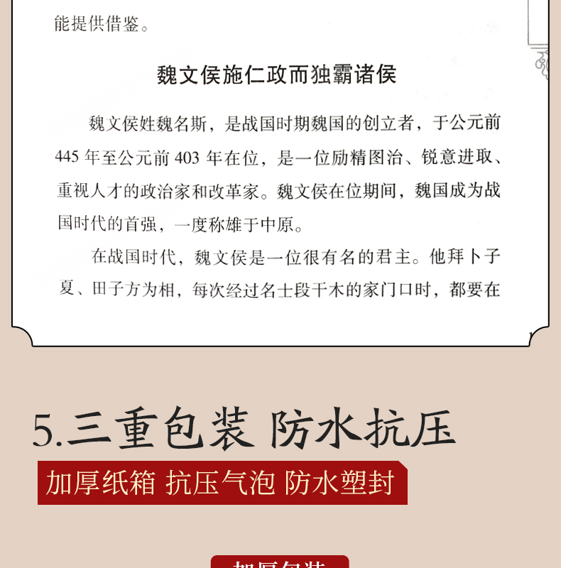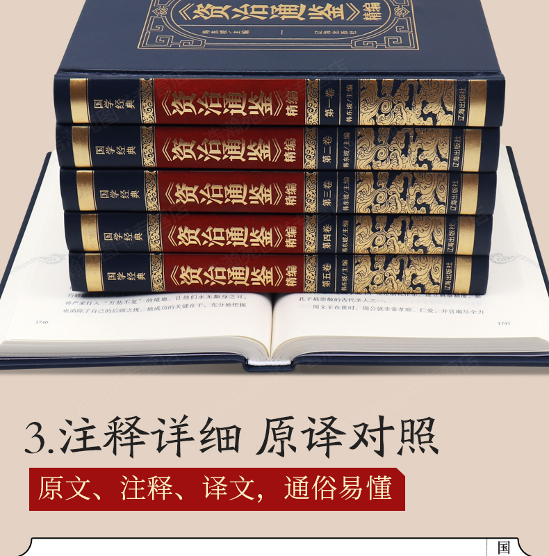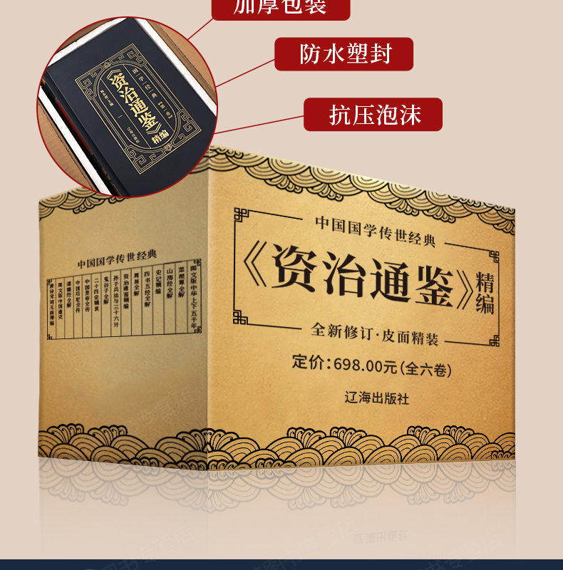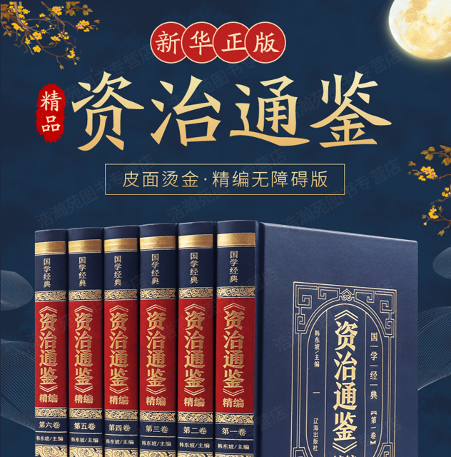 这款《资治通鉴》国学皮面精编版,全6册,由辽海出版社出品,司马光主编的国学经典巨著,烫金工艺皮面精装,注释详细,原译对照,通俗易懂,优质专用纸张,印刷清晰。