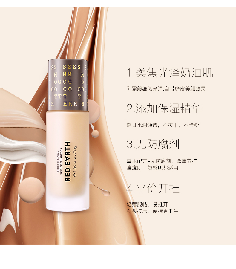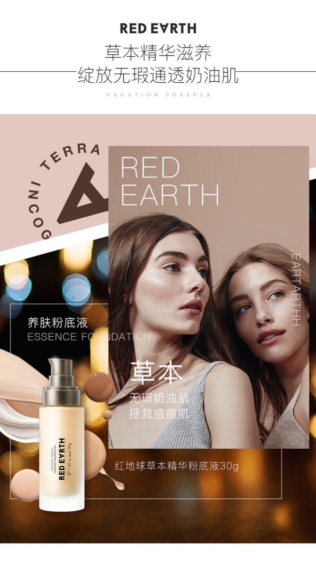 国际媒体+TOP博主+小红书力荐,超级平价但好用的养肤粉底液,Redearth是澳大利亚的一个小众牌子,在日本生产的,和covermark同厂,对敏感肌、沙漠大干皮非常友好,纯草本精华,拯救痘痘肌+滋润大干皮+轻薄如缎+润贴无痕+保养肌肤,一整天都不脱妆~