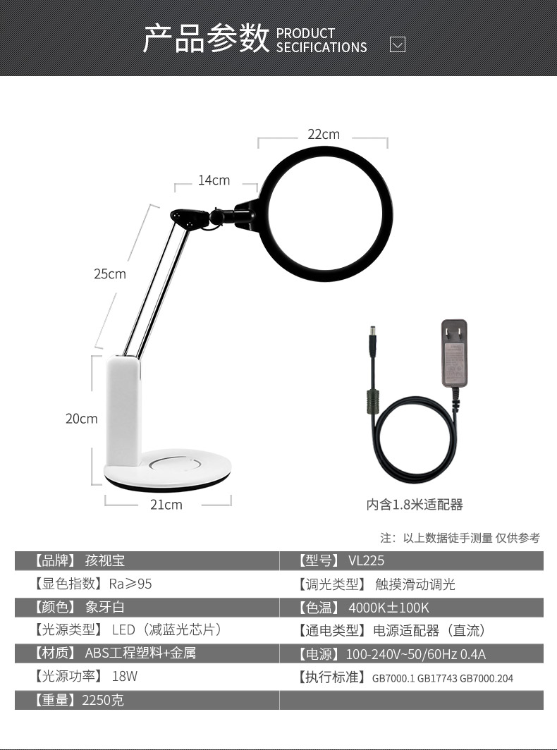 天猫孩视宝旗舰店409元,可领140元优惠券,实付269元到手,VL225是孩视宝的高端型号。18.8CM发光面 96颗全光谱灯珠 国AA级自然光。
