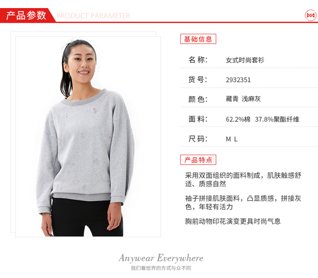 这款地球科学家 女春秋运动卫衣,使用双面组织的面料—62.2%棉+37.8%聚酯纤维,肌肤触感舒适、质感自然,透气性也好。宽松版型,插肩袖撞色拼接设计,舒适又好看。胸前是动物印花,避免单调。