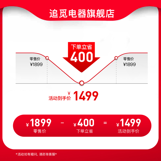 追觅电器旗舰店现售价1899元,下单立减400元,近期好价,喜欢的买买们快入手~