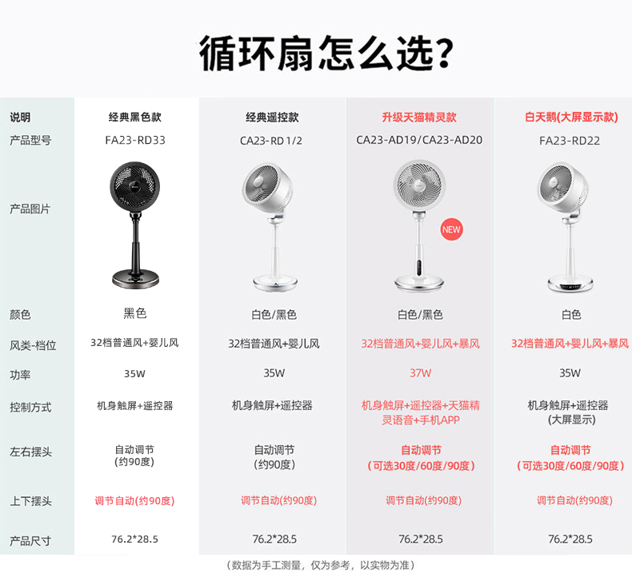 细节上:可左右30度、60度、90度自动摇头,上下90度自动摆头,也可3D混合旋转(注意:不要用手掰动方向),共有32档风速,另外伸缩立杆可调节高度,满足不同人群、环境使用需求。