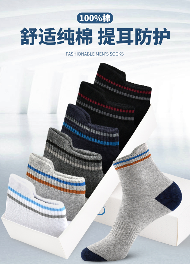 100%新疆长绒棉面料,面料柔软亲肤,吸湿排汗,紧密纺织工艺,穿着舒适透气,不臭脚。符合人体工学立体设计、贴合双脚、袜头采用纯手工对接不磨脚更耐穿,袜口提耳设计,防止运动摩擦脚踝,舒适不勒。