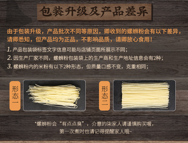 配料:调制干米粉包、螺蛳肉汤料包、辣椒油配料包、酸笋配料包、腐竹配料包(内含氮气保鲜)、花生配料包,共335g。