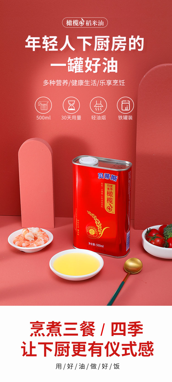 这款贝蒂斯 稻米橄榄调和油,是一款食用植物调和油,由12%西班牙特级初榨橄榄油+88%稻米油调和而成,含大量的不饱和脂肪酸矿物质元素,还富含维生素A、B1、E等。油质色泽清亮,少油烟,使用健康。