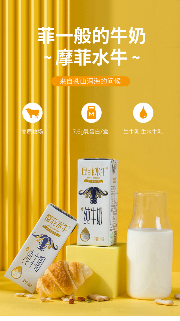 来自云南苍山洱海的摩菲水牛,由“摩拉”奶水牛和“尼里·拉菲”奶水牛以及本土奶水牛杂交,经过数代改良,培育出的奶水牛品种。这种奶水牛产量很低,营养价值很高,口感顺滑、细腻、奶味浓郁。