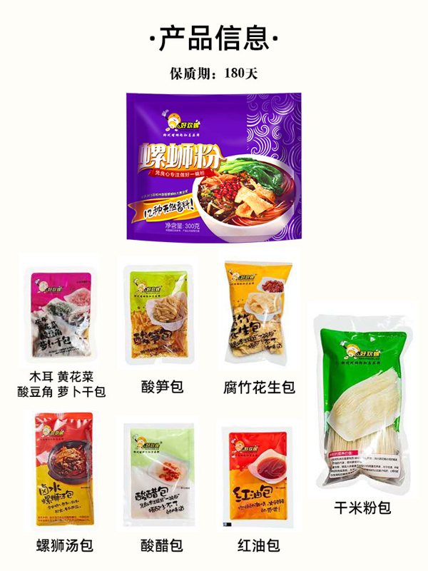 螺蛳粉是广西的传统小吃,具有辣、爽、鲜、酸、烫的独特风味。好欢螺一直口碑不错,螺蛳粉届扛把子。选料正宗,香辣可口,粉也是劲道有嚼劲。此款螺蛳粉为水煮型,内有丰富配料:卤水螺丝肉包、花生腐竹包、萝卜酸豆角包、黄花菜木耳包、酸笋包、酸醋包、红油包~